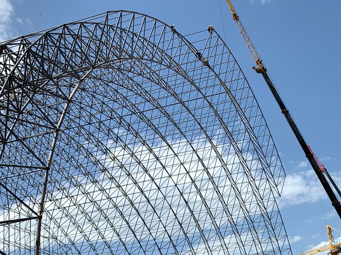 (2)网架加工前应对现场尺寸进行复测,确认无误后方可进行加工、安装;网架制作、运输、安装应遵守《空间网格结构技术规程》JGJ7-2010、《钢网架叶城螺栓球节点》JG/T 10-2009、《钢网架叶城螺栓球节点用高强度螺栓》 GB/T 16939-2016、《叶城钢结构叶城工程叶城施工规范》 GB50755-2012、《叶城钢结构叶城工程叶城施工质量验收标准》 GB50205-2020。